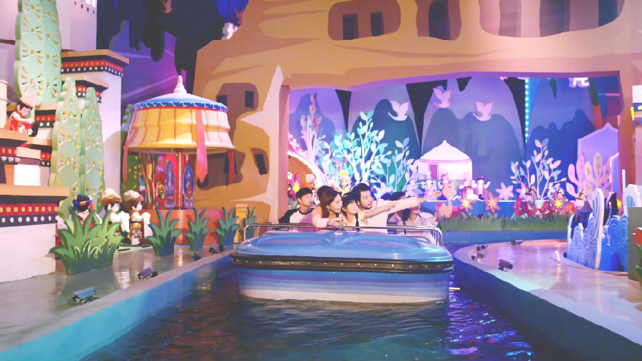 同樣是以成語為主題,大型室內漂流項目《成語童話》則讓家長和孩子在室內河道漫游童話般的成語王國,美輪美奐的成語布景、萌趣可愛的成語主角,讓游客們嘖嘖稱奇,紛紛拿出手機記錄下這夢幻般的場景。
