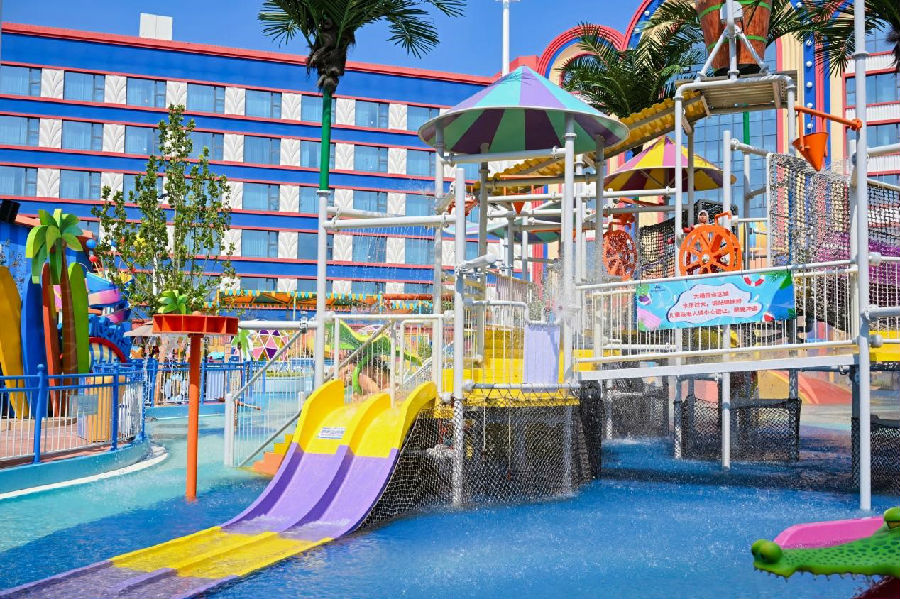 《熊出沒(méi)水寨》融合熊出沒(méi)元素打造了多款適合兒童及親子互動(dòng)的家庭戲水項(xiàng)目,設(shè)有水槍對(duì)戰(zhàn)區(qū)、水上浮橋、水炮噴淋區(qū)等多種戲水區(qū)域,為游客開(kāi)啟合家嬉水的歡愉時(shí)光。