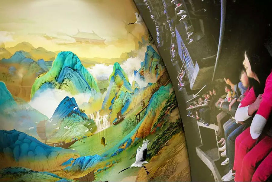 2018年8月,方特主題樂園震撼開啟了首個(gè)中國畫球幕飛翔影院項(xiàng)目《飛越千里江山》,廣受游客的好評。該項(xiàng)目還榮獲科睿國際創(chuàng)新節(jié)“科技創(chuàng)新類金獎(jiǎng)”殊榮。華強(qiáng)方特300位數(shù)字藝術(shù)家耗時(shí)一年,運(yùn)用數(shù)字3D技術(shù),將傳世名畫《千里江山圖》還原在了22米高的巨型球幕上,讓游客身臨其境感受青綠山水巔峰之作的美妙意境與磅礴氣勢。《飛越千里江山》運(yùn)用數(shù)字技術(shù)讓傳統(tǒng)文化重新綻放出獨(dú)特魅力,這件作品斬獲科睿“科技創(chuàng)新類金獎(jiǎng)”可謂實(shí)至名歸。