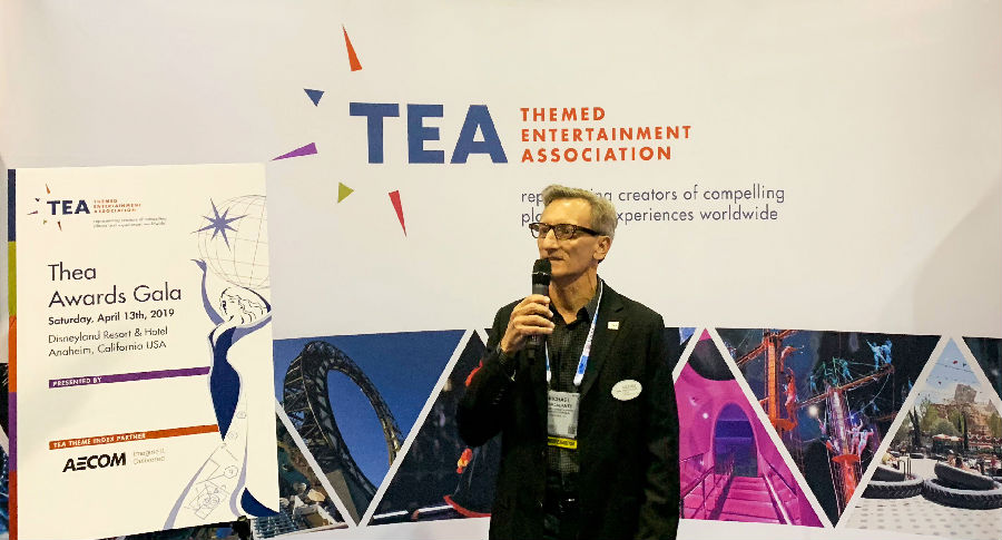 主題娛樂(lè)協(xié)會(huì)(Themed Entertainment Association:TEA)是一家非營(yíng)利性的國(guó)際聯(lián)盟,組建于1991年,總部位于美國(guó)加利福尼亞州,已成為全球主題娛樂(lè)行業(yè)最權(quán)威的機(jī)構(gòu),目前擁有來(lái)自全世界的超過(guò)7000名行業(yè)專(zhuān)家。該協(xié)會(huì)自1994年起評(píng)選和頒發(fā)TEA大獎(jiǎng),旨在表彰全球業(yè)界為游客創(chuàng)造出優(yōu)秀非凡體驗(yàn)的主題娛樂(lè)設(shè)計(jì)項(xiàng)目、游樂(lè)設(shè)施、展覽和景點(diǎn)等,該獎(jiǎng)項(xiàng)被公認(rèn)為主題娛樂(lè)行業(yè)的最高榮譽(yù),因其在行業(yè)的重要地位和頒獎(jiǎng)典禮的盛大隆重,素有全球主題公園行業(yè)的“奧斯卡”獎(jiǎng)的美譽(yù)。歷屆TEA“杰出成就獎(jiǎng)”的得主,均是從全球數(shù)百家旅游企業(yè)中脫穎而出的行業(yè)翹楚。