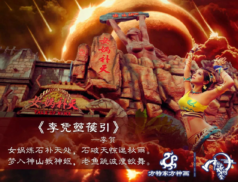 《女媧補(bǔ)天》乘坐多自由度動感游覽車,真實(shí)再現(xiàn)洪荒地界,追隨女媧開啟擊退巨怪、采石補(bǔ)天,開啟奇幻之旅。