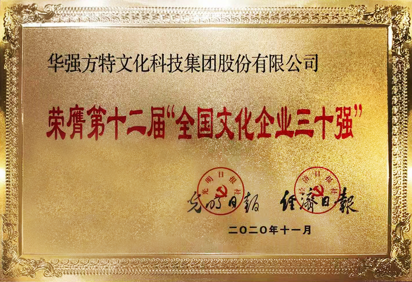 11月16日,由中宣部組織召開的第十二屆“全國文化企業30強”座談會上,光明日報和經濟日報聯合發布了2020年“全國文化企業30強”榜單,深圳文化科技領軍企業——華強方特集團憑借優秀的市場業績和創新成果,再度成功入選。全國文化企業30強是我國文化產業領域最權威的一..