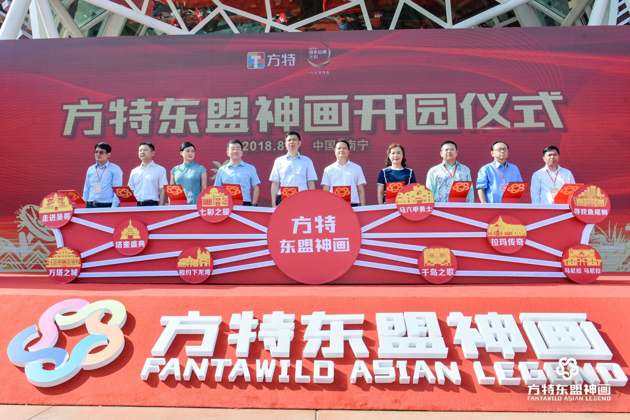 ??8月8日,南寧方特東盟神畫主題樂園盛大開園。南寧青秀山風景名勝旅游區管理委員會主任藍飛、南寧市旅游發展委員會副主任林慧超、??????????馬來西亞駐南寧總領事館總領事黃奕瑞、泰王國駐南寧總領事館總領事蔡樂蓬蒂窩拉衛、柬埔寨王國駐南寧總領事館領事..